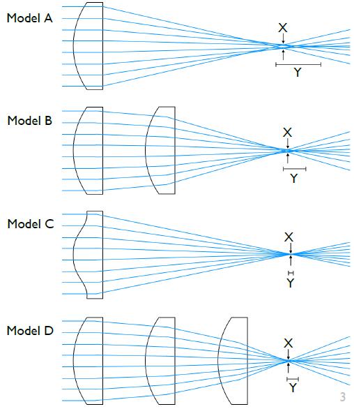 | -C | Varies | BK7 | 360-2500nm | Aspheric system for maximum throughput and minimal spherical aberration with a 1 lens system. | |