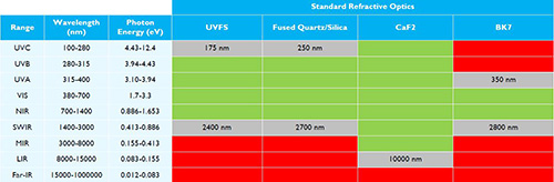 可以選擇不同的材料在不同的波長范圍內(nèi)傳輸。 下表中列出了一些**常見的選項,以快速參考每種材料的**有用范圍。