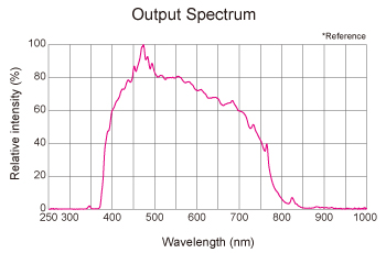 MAX-400D氙燈光譜范圍只有400-700nm,在這段可見(jiàn)光范圍內(nèi)具有很高的功率和平坦的能量分布。