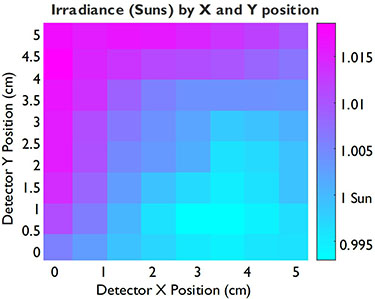 輻照不均勻度[1.3%] 在邊長5厘米的正方形輻照面積上。